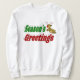 Sötskjorta med årshälsningar i 3D-grönt, röd text och renar. Sötskjorta i flera färg.