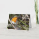 En vacker robin satt i träd. Kort inuti läser: Säsonhälsningar.