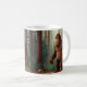 I mugg finns en visuell illustration av en brun Bigfoot som pissar ut bakom lush grönt träd. Päls blandas med skogen medan solljus filtrerar genom löven och skapar en varm atmosfär, Bigfoot Sighting: Bara en annan dag i Skogen’ kurvor kring konstruktionen. Perfekt för utomhusentusiaster och Bigfoot fläkt, mugg fångar folklore på ett härligt sätt!