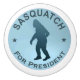 En mörk silhuett av Sasquatch (Bigfoot) på en medelblå bakgrund tillsammans med blocktext med texten "SASQUATCH FOR PRESIDENT". Inte direkt nöjd med valet av kandidater till talman denna gång? Tittar du för en utomsider från Washington? Här är din kandidat. Bigfoot tillbringar faktiskt nästan hela sin tid utanför Washington, Idaho, Oregon, flera andra stater, och delar av Kanada. Han är tillräckligt stor för att fylla alla skor, men behöver inte oroa sig för att han kommer att trakassera kongressen för att införa en radikal dagordning, lämnat eller höger, som han så sällan ses. Ledde av Cryptozoology Policy Action Committee (CPAC); Bonners Ferry, ID