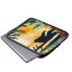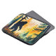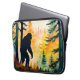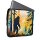 Sasquatch som går i skogen, höstlandskap vid solnedgång