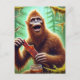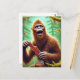 Sasquatch i myssy-skog med en burk nötskockas vykort