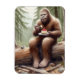 En lycklig Sasquatch som åt en bit ost som han hittade i den mystiska skogen, gullig fantasi-konst AI skapade konst