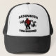 Formulera "den Sasquatch jägaren," skriftligt i enkel svart stilsort. Den inkluderar all en svart skogplats med en Sasquatch silhouette i centrera, och en röd prickskytt uppsätta som mål siktat att döda den gäcka beasten.