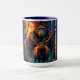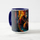 Sasquatch Moonlit Hunt Mugg. En majestät Sasquatch och Elk under en glödande orange måne. Den här designen blandar varje mystik med naturskönhet. Varelsens piercing och päls tänds av måne glow och fångar upp själva kärnan av omanipulerad vildhet.