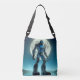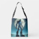 Sasquatch står under ett fullt måne omgivet av berg, vilket avslöjar en titanexoskelett av elektroniska kretsar och LED-ljus..