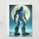 Sasquatch står under ett fullt måne omgivet av berg, vilket avslöjar en titanexoskelett av elektroniska kretsar och LED-ljus..