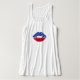 Roligten och det lömska tanktopet har läppar i rött, vitt och blått, som USA flagga. Den har också stjärnor. Det är en underbar design för den 4 juli!