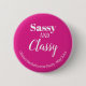 Få party att börja med Rosan Bachelorette Party Button, den där sassy och Classy! Detta tillbehör är perfekt för att lägga till lite humor och roligt till din bachelorette-fest. Med sitt rosa och vita färg kan du anpassa det med ditt eget textmeddelande, oavsett om det är namn, namn eller händelsemedatum för bruden. Sassy och Classy är här för att se till att alla vet att du är redo att fira! Den här knappen är ett underbart sätt att visa dina brudar och gäster att du är redo att sparka upp klackarna och ha en explosion. Lägg till en lekfull och minnesvärd inslag till festivalen med den här lustiga och snyggt party-knappen.