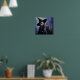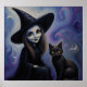 En ung häxa med stort, uttrycksfullt ögon sitter bredvid en svart katt, båda inneslutna i en mystisk, roterande blå och lila bakgrund. Hennes spetshatt och kattens gyllene ögon tillför en trevlig beröring till scenen. Denna poster avslutas i ett oljefärgtryck.