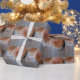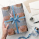 Säte på trähyllor, friska livsmedel, rullar presentpapper