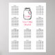 Stationsschema för rutten Cute bröllop med mynningen burk med ett rosa hjärta på märkrn. Svart, vit och rosa. Ett tryckt teckensnitt och en standard. Tio bord.