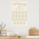 Elegantens svarta kalligrafiskript bröllop-sätesdiagram poster designfunktioner i ett monogram av briden och groom namn och bröllop datum- och anpassningsbar-malltexten för nitton (19) bordsnummer och gästnamn. Färg omfattar elfenben och champagne guld.