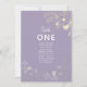 Elegant, modernt, boho lila lavender dubbla-side bröllop-sittplatskort med faux silver och guld guldad blommigt snöre och enkelt kalligrafskript.