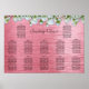Ett fantastiskt gästdiagram i rosa bröllop med en metallisk mönster som liknar lakan metall, med en mycket traditionell möhippa av vit ros längs övre kant.
