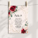 Säteskort för röd ros och Guld Blommigt Bröllop Inbjudningar