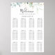 Komplettera din roliga bröllopsinbjudan med den här guld grönt löv bröllop sätesdiagram. Konstruktionen har elegant vattenfärgsgrönt och guld eucalyptus löv. Det innehåller tillräckligt med utrymme för omkring 120 gäster från bröllop. Gör plats för mer (eller mindre) genom att klicka på knappen Anpassa och öka eller minska teckensnittets storlek. Anpassa detta tecken med namn på bruden och brudgummen och datumet.