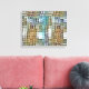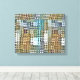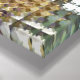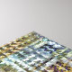 En skakande visning av silver, vit, blå, svart, lavender, grönt och brons in i en levande mönster av quilted satin.