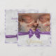 Vackra eleganta och sofistikerade dopkort för tvillingflickor, med en fin bild på ett lila satinband tryckt på en fantastisk silverdamask bakgrund och en söt blank lila och silver kantbård, med ordet "Dop" längst ner i vacker guldsrift. Anpassa framsidan av din inbjudan med ett fotografi av din dotter. Baksidan har samma tryckta bakgrund, ram och band och dina evenemangsuppgifter. All text är helt anpassningsbar för att möta dina krav. Om du behöver hjälp för att anpassa din produkt, vänligen kontakta mig via min butik och jag hjälper dig gärna.
