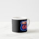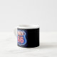 Denna vita espresso kopp med sin bild på båda sidor av en röd, vit och blå neonskylt på rutten i svart, är en lämplig speciell beröring, gåva eller tjänst för ett 20-tal, 40-tal och 60-tal party!