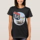 Route 66 med vit Chevrolet Corvette 1961 och linje med stater för att visa var vägen springa går. Den här ikoniska vägen springa Öster till Väster från Chicago, Illinois till Santa Monica, Kalifornien. Även om Route 66 i sig inte längre finns tekniskt sett, är cirka 85 procent av det fortfarande körbart än i dag!