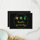 perfekten att tacka dina gäster, det här St. Patrick's temakort är en del av gendernas avslöjande samling. Med en svart bakgrund med ljusa och färgstarka irländska tematurfärger, anpassar du ditt i dag!