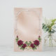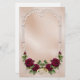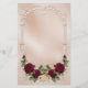 Diskret och elegant i mjuk ro-rosa-satäng och -damm, med rullat gräns, spola djupt burgundy röd ros och guld bröllop ringar. Finns även i beige.