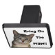 Det här husvagnens täckmantel säger: "Hämta fisken!" Släpvagnens häcktäcke visar en silver, Siamese, katt med den blazrande blå öga som heter Meece. Meece ses här i bild med huvudet något nedtryckt mot sidan. Hans ansikte är klädd med tunt svart rand på ömse sidor om hans blå öga och högst upp på huvudet.