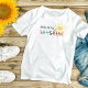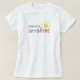 Här är en roligt och färgfull t-shirt som säger: "Ta på solsken" i färgstarkt typsnitt, tillsammans med ett hjärtformat sol.