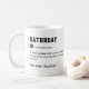Lördag: den mest älskade dagen i veckan. Vare sig du ligger i sängen till middagstid eller tappar det långsamma kaffet på soffan, så ger mugg chill helg vibes med en roligt, lexikon stil twist. Perfektens följeslagare för dina favoritplaner - inga planer.