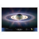 I den här slående och vackra bilden är Mättens ringar bakgrundsbelyst av Sol och skapar att de ser ljusare ut. Detta är ett verkligt foto som tagits av Cassinis rymdsond och som visar oss en syn som vi inte kan se från jorden. Det som gör detta foto verkligt speciellt är emellertid den blek blå prick som syns genom ringar i den övre lämnat delen av: Det är jorden, vår lilla hemplanet som ses från nära en miljard mil bort. Poster levereras med en unik sidfot som innehåller information om bilden och uppdrag samt en antecknad teckenförklaring.
