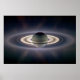 Ni kanske tänkor att detta är en falsk bild, men det är faktiskt ett riktigt foto från Cassinis rymdfarkoster på Saturus som överskuggar Sol. ringar blickar ljusa som ljusfiltren genom dem och reflekterar det ljuset hela vägen till planetens baksida och skapar en surrealistisk effekt. En speciell överraskning i fotot är att den ljusblå pricken är Jorden till lämnad om ringar, där du är sitta höger nu. Detta är verkligen en fascinerande och vacker bild. Arv från NASA och JPL.
