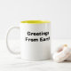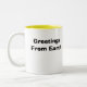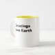 Cutes Saucer Buddies Mugg med orden "Hälsning från jorden" tryckt på motsatt sida.