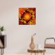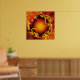 De l'autre côté, une **carpe Koi orange** nage élégamment, représentant la persévérance, la chance et la prospérité. Ses écailles scintillantes captent la lumière, évoquant l'équilibre entre la force et la grâce. La carpe semble en parfaite harmonie avec les éléments géométriques du poster, ajoutant une touche de sérénité et d’espoir.