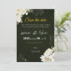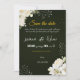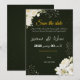 A sophisticated design combining a deep, dark green background with delicate white floral accents in the corners, giving the invitation a sense of luxury and refinement. The harmonious color combination of royal green and cream roses creates a serene and elegant atmosphere suitable for weddings, engagements, religious ceremonies, and other distinguished occasions.