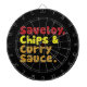Saveloy, Chip & Curry Sauce. Darttavla