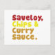 Lustigt Takeaway Fast Food Humor ~ Saveloy, Chip och Curry Sauce. Globe Trotters specialiserar sig på idiosynkratiskt bildmaterial från hela världen. Här hittar du unika hälsningskort, vykort, Poster, Mousepads med mera.