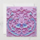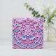 This pink and blue Save the Date Card is designed for a baby shower. The scrollwork image on the front of the card resembles an elaborate cake decoration with frosting flowers.