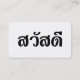 Sawatdee / Hello ~ Thailand / Thai Language Script Visitkort