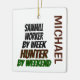 Denna unika prydnadsartikel med citatet "Sawmill Worker by Day Hunter by Helg" är perfekt för alla sågarbetare som jagar i kärlek.