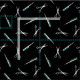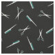 Svart väv med en modern mönster av saxar och kammar i vitt och tealt.