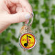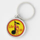 Saxofonen som leker manen, skrivar rund silverfärgad nyckelring