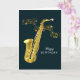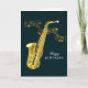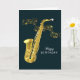En guld- saxofon och en fodra av musik noter smyckar bekläda av detta grattis på födelsedagenkort. Underbart primat speciellt för en vem leker saxofonen.