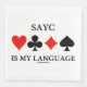 Dubblettspelare som användor Standard American Gult Card som sitt vanliga konventionskort kommer att ha den här pappra napkin med fyra kort-kostym tillsammans med bron som säger "SAYC är mitt språk". Du behöver inte vara en brolärare eller två brorektorer för att njuta av det!