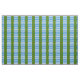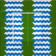 "vågigt barry per blek vågigt argument och azure och vert." Allover mönster av folkbrickan för Barony of Aquaterra i Society for Kreativ Anakronism.