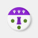 "Argent, en torn purren mellan två äpplen i färd och ett äpple i basvert och på en högstyrd, renrasig, tre breddgrader."