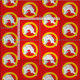 "Gules, en delfin har böjt en stor naiant genom en ogiltigförklaring eller." Allover mönster av folkbrickan för Barony of the Far Väster in the Society for Kreativ Anakronism.