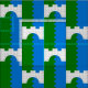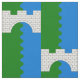 "Per blek vågigt vert och azure, en bro med ett span genom hela argumentet." Allover mönster av folkbrickan för Shire of Old Stonebridges i Society for Kreativ Anakronism.