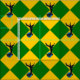 "Per saltire eller och vert, en örns ben raderade sable med en klippa gemstone azure." Allover mönster av folkbrickan för Kreativets anakronism.