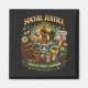 Raised fists of many identities surround the scales of justice, expressing a powerful call for equality, unity, and collective freedom.
